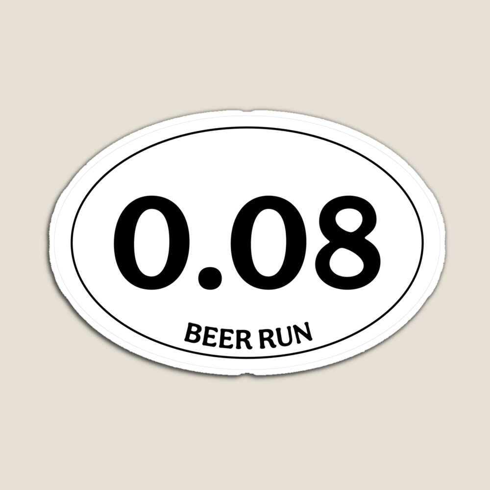 Available on Redbubble, this funny Beer Run is a tongue-in-cheek take on the marathon stickers seen so often. 0.08 is the typical max blood alcohol level for driving- so run instead! Available in stickers, tees, graphic tees, sweatshirts, hats, and cards.