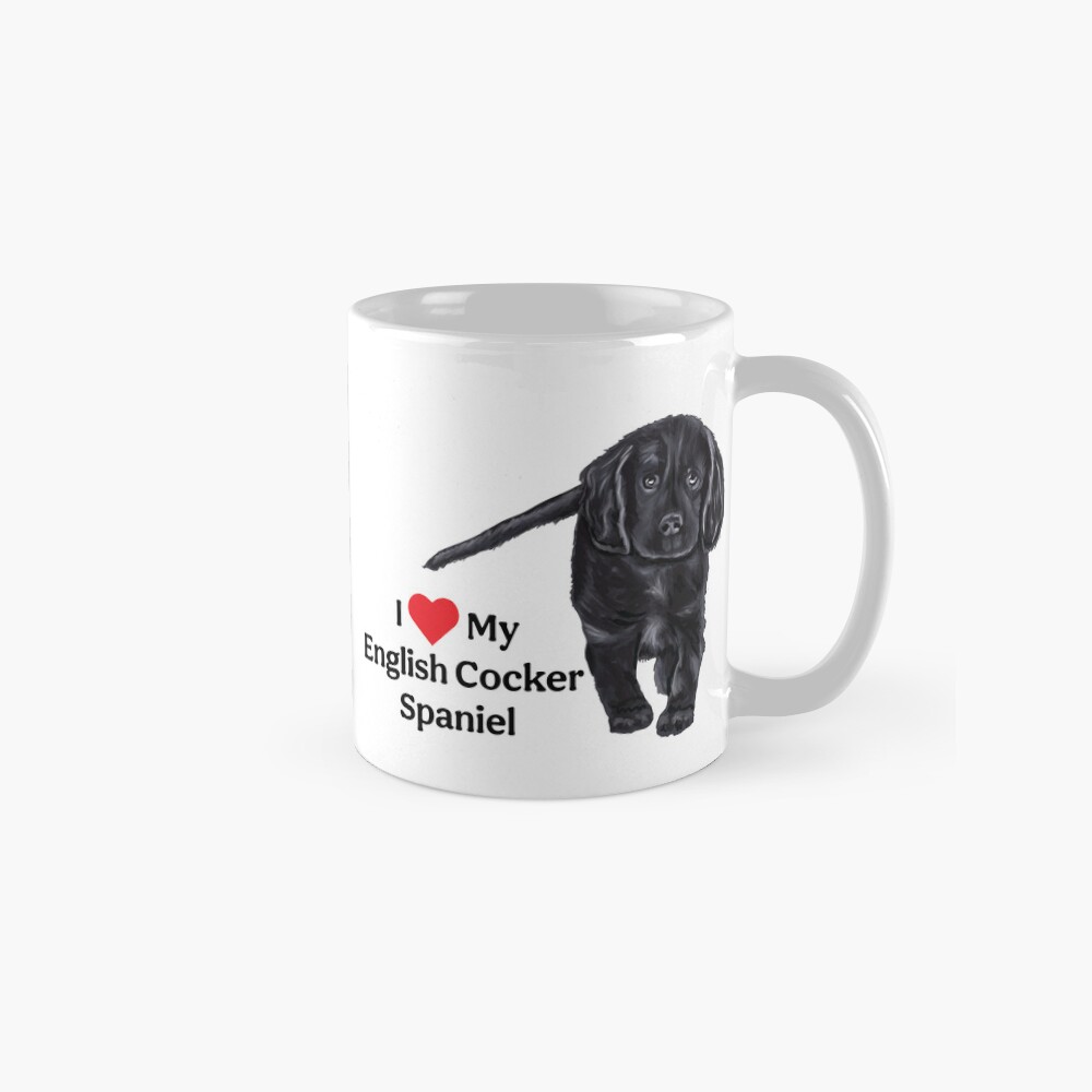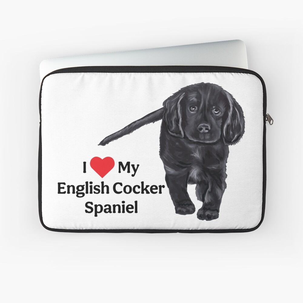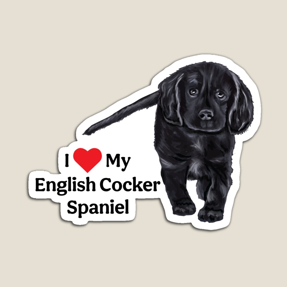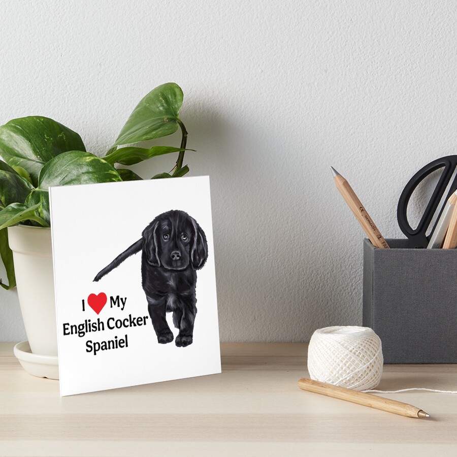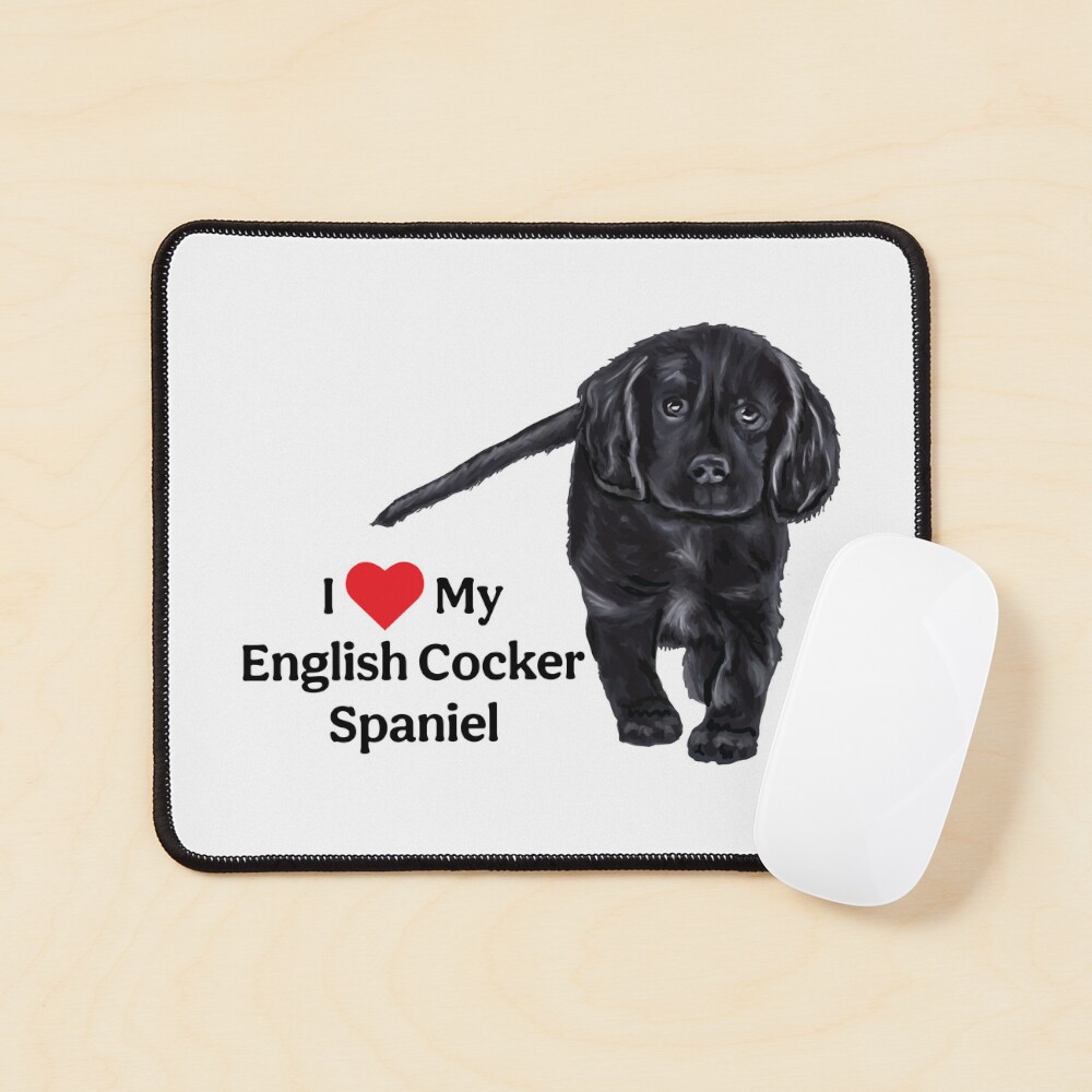 I Love My English Cocker Spaniel Available on Redbubble, this adorable black English Cocker Spaniel puppy with the text I heart My English Cocker Spaniel. Perfect for any owner of these wonderful dogs! Visit Redbubble Page